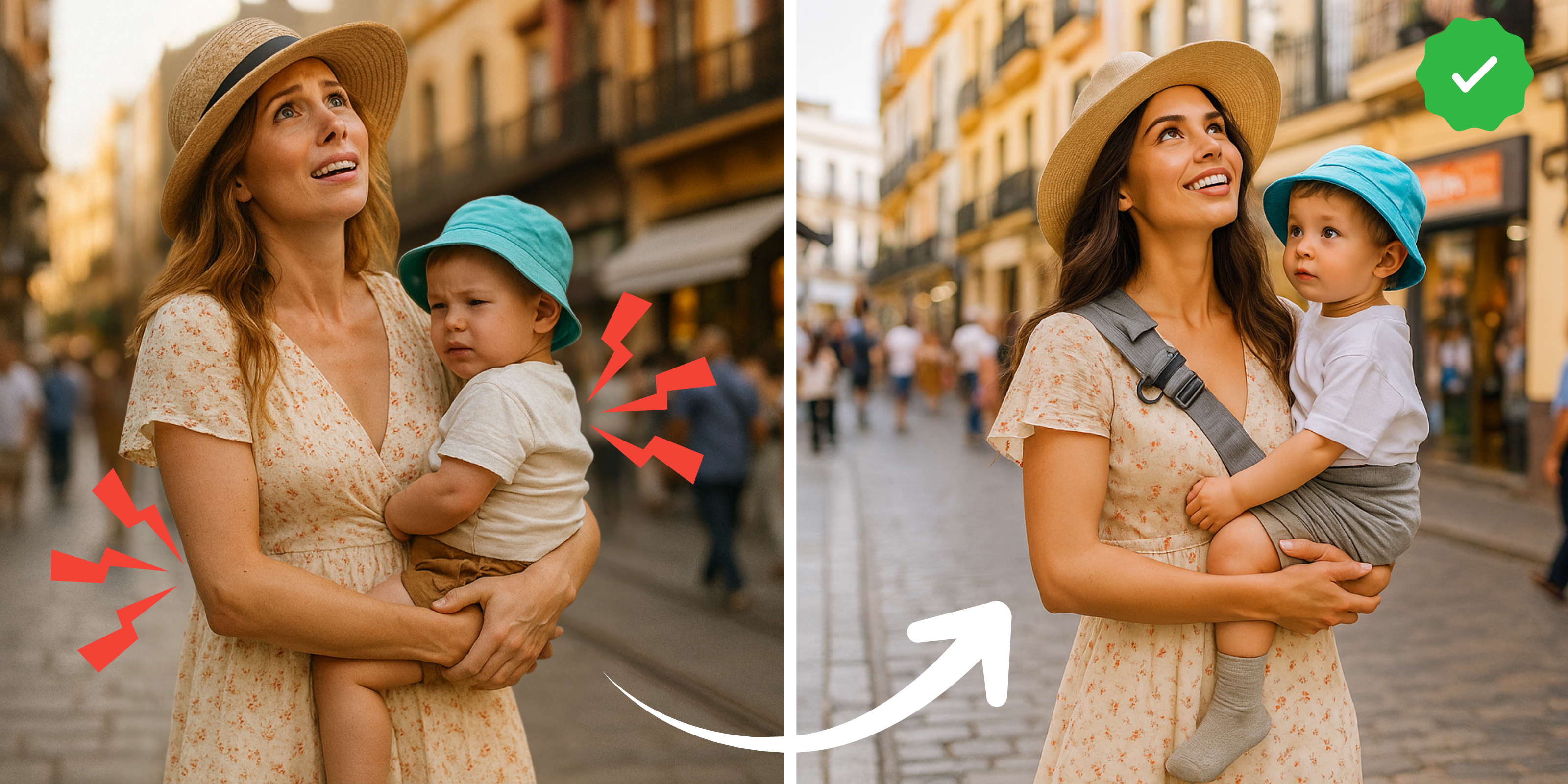 J’avais toujours cette crainte de perdre mon enfant chaque fois que je faisais une course. Avec le porte-bébé Soréa, je suis rassurée de l’avoir près de moi, sans souffrir, avec mes mains toujours libres.
