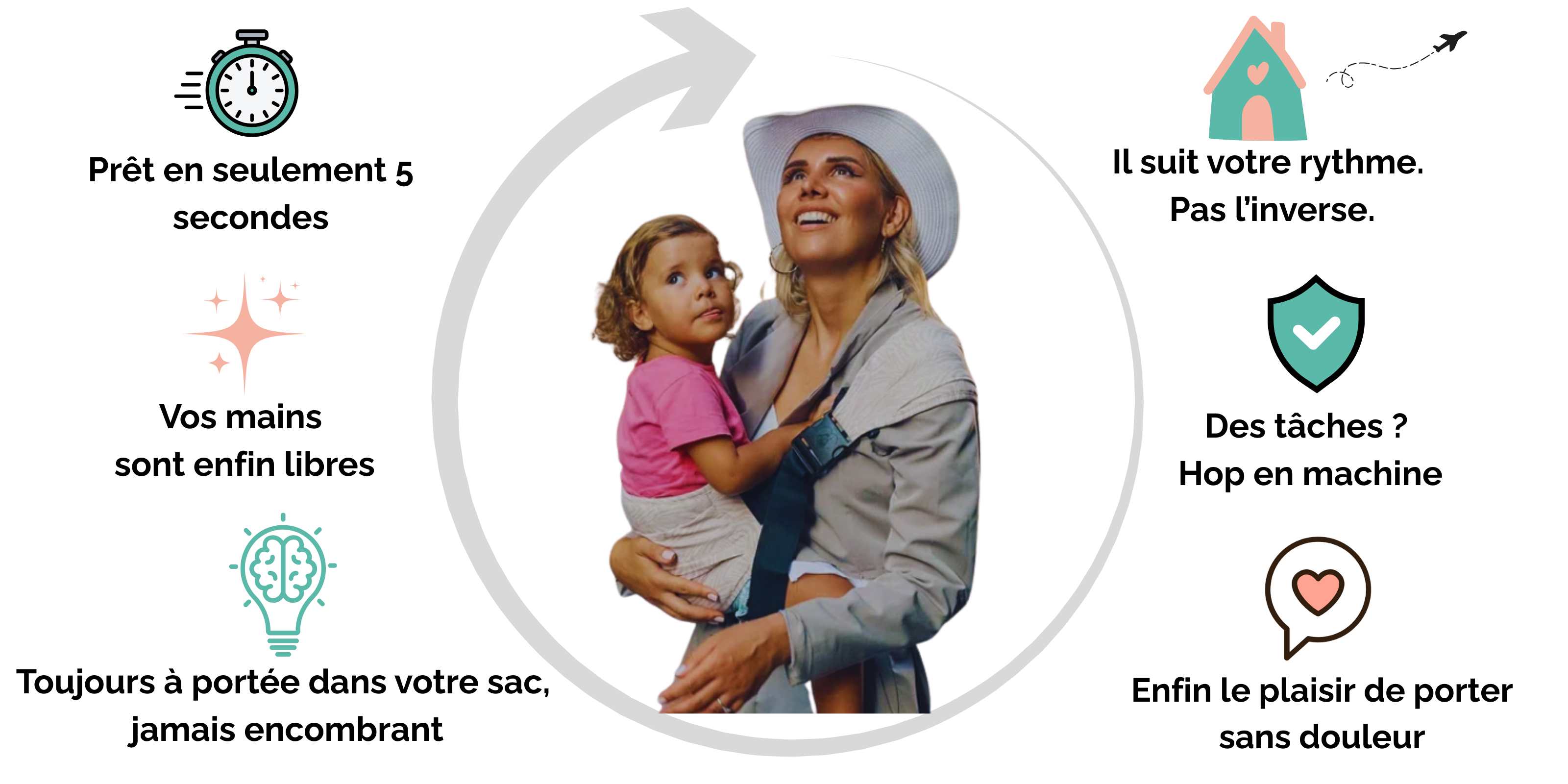 Ça tient dans mon sac, c’est confortable pour ma fille et moi.